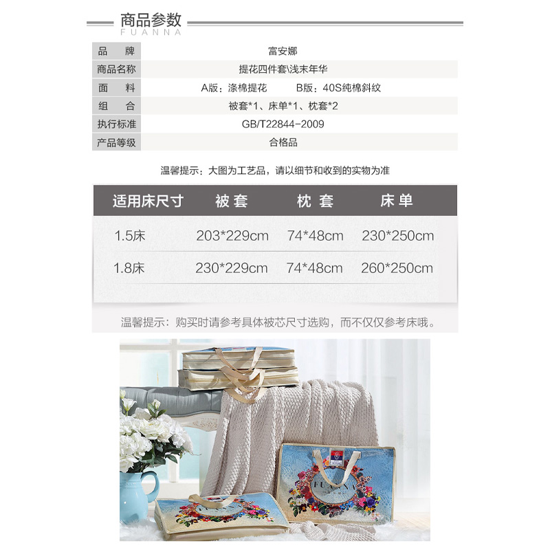 浅末年华 床单四件套(被套1件床单1件枕套2件)(适合1.5米床)【A版:涤棉提花;B版:纯棉/咖啡】 |