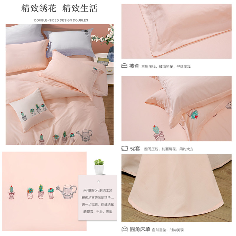 安琪乐园 床单四件套(被套1件床单1件枕套2件)(适合1.5米床)【纯棉/粉】 |