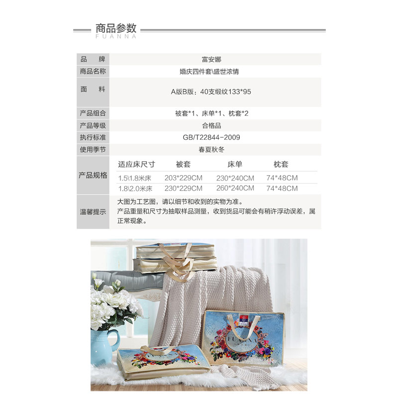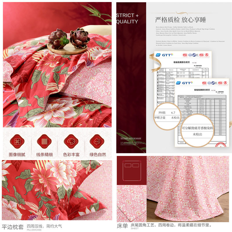 盛世浓情 床单四件套(被套1件床单1件枕套2件)(适合1.5米床)【纯棉缎纹/红】 |