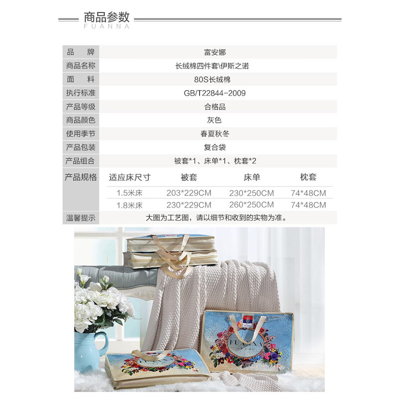 伊斯之诺 床单四件套(被套1件床单1件枕套2件)(适合1.5米床)【长绒棉/灰】 |