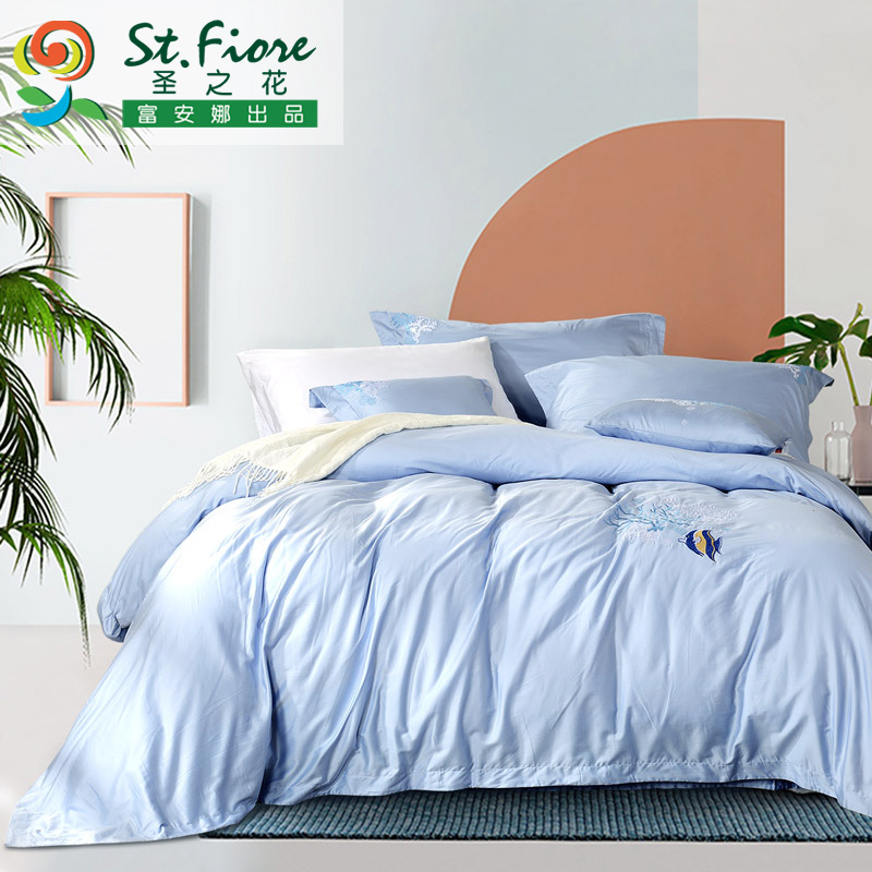 深海奇遇 床单四件套(被套1件床单1件枕套2件)(适合1.5米床)【纯棉缎纹/浅蓝】 |