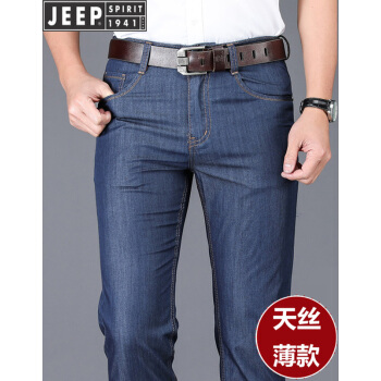 吉普(JEEP)牛仔裤男宽松夏季新品薄款直筒长裤商务休闲大码天丝弹力男士裤子 2019款 蓝色 33码 2尺5 |