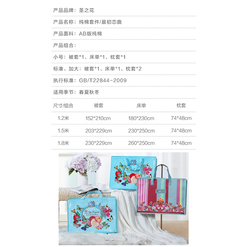 晨初恋曲 床单三件套(被套1件床单1件枕套1件)(适合1.2米床)【纯棉/绿】 |