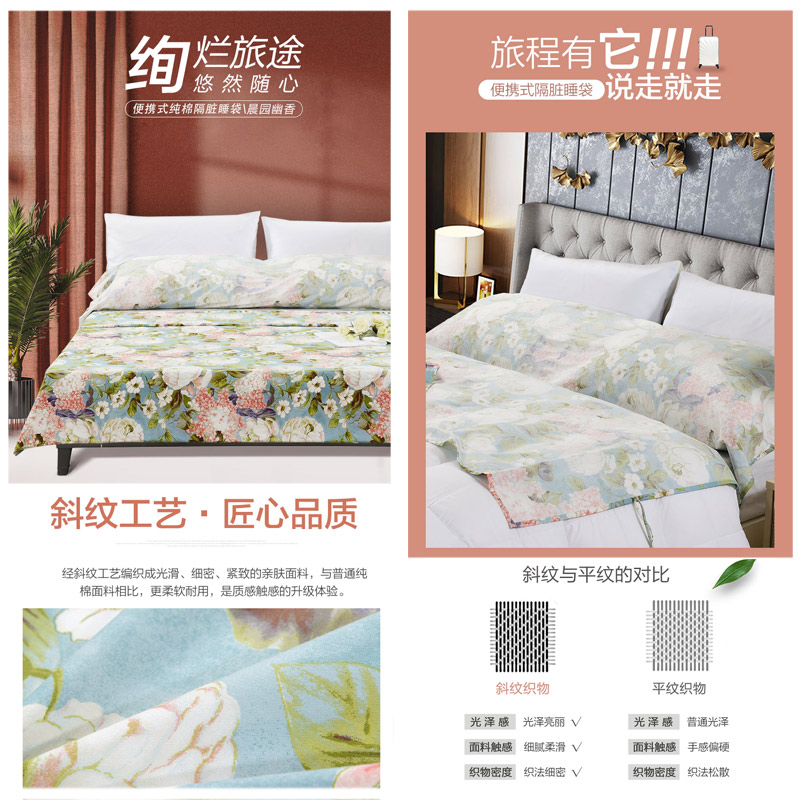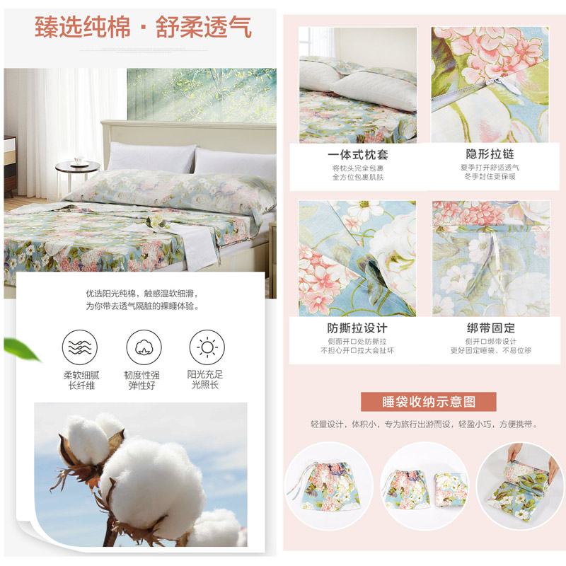 晨园幽香便携式旅行睡袋(睡袋1个)【纯棉/蓝】 |
