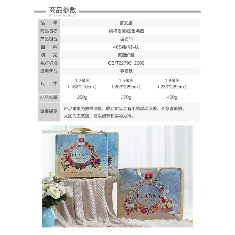 国色嫣然 纯棉印花夏被(被芯1件)(适合1.2米床)【面料:纯棉;填充:聚酯纤维/蓝】 |
