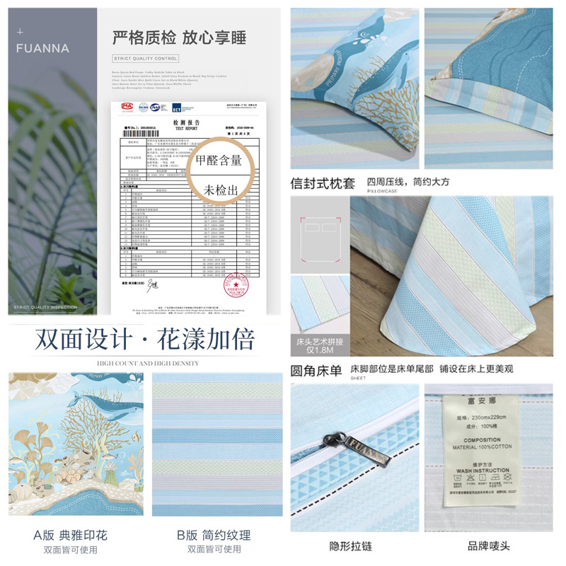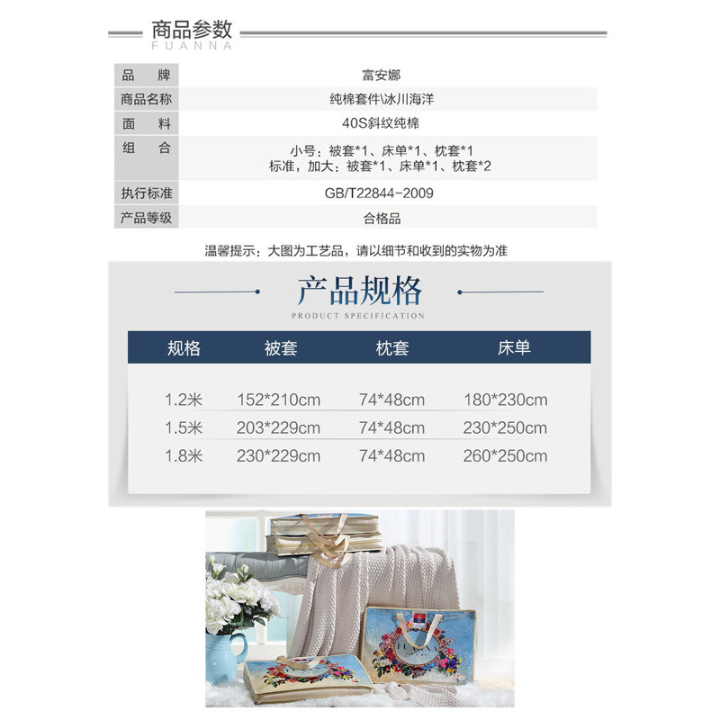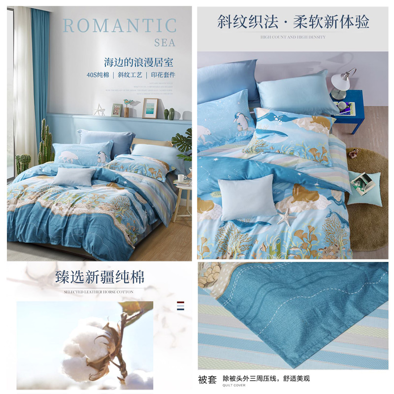 冰川海洋 床单三件套(被套1件床单1件枕套1件)(适合1.2米床)【纯棉/蓝】 |