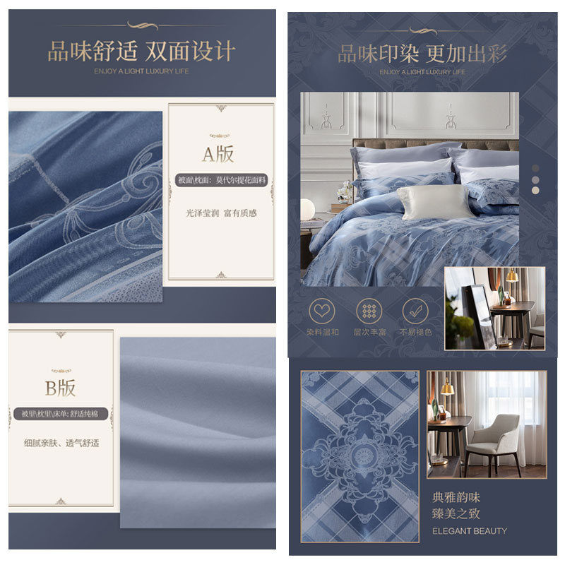 伦敦故事 床单四件套(被套1件床单1件枕套2件)(适合1.5米床)【A版:莫代尔提花;B版:纯棉/蓝】 |