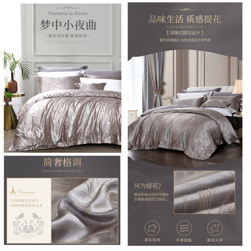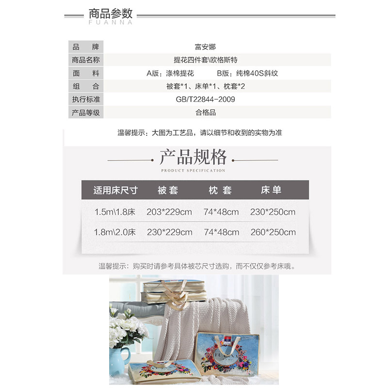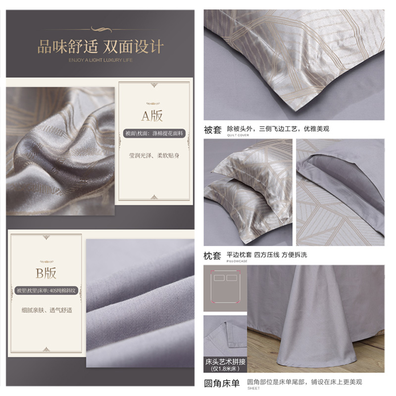 欧格斯特 床单四件套(被套1件床单1件枕套2件)(适合1.5米床)【A版:涤棉提花;B版:纯棉/灰】 |