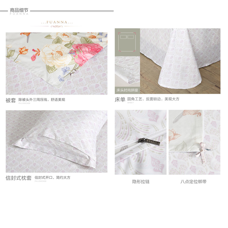 花舞悠然 床单三件套(被套1件床单1件枕套1件)(适合1.2米床)【纯棉/粉色】 |