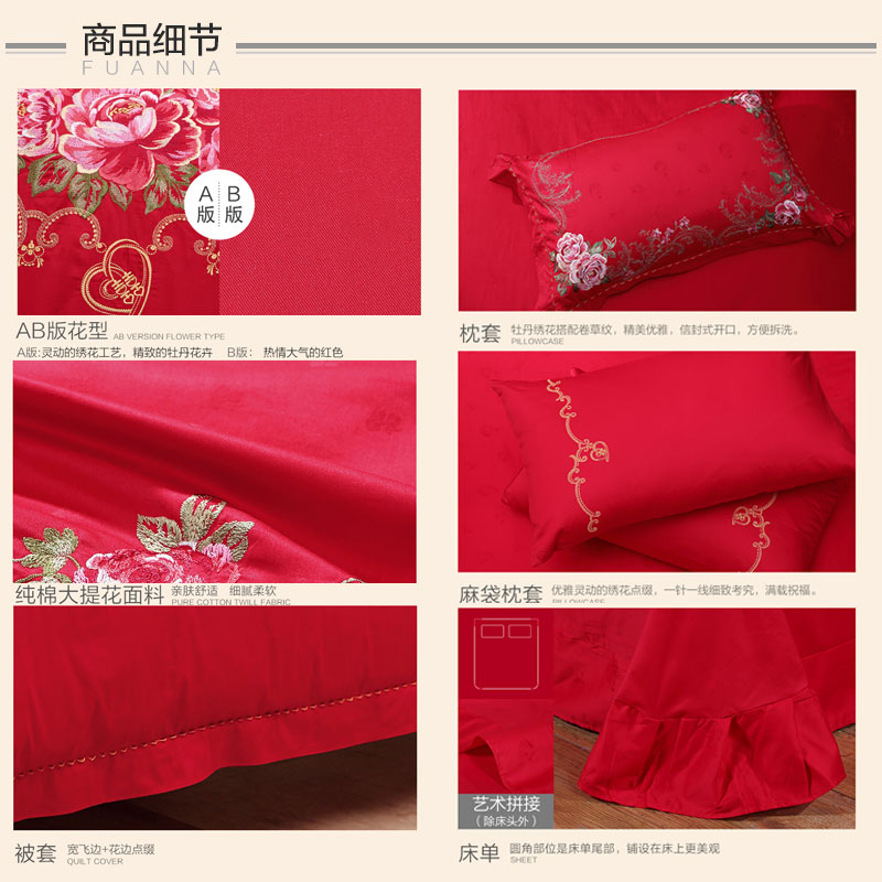 永恒爱恋 床单六件套(被套1件床单1件枕套4件)(适合1.8米床)【纯棉提花/红】 |