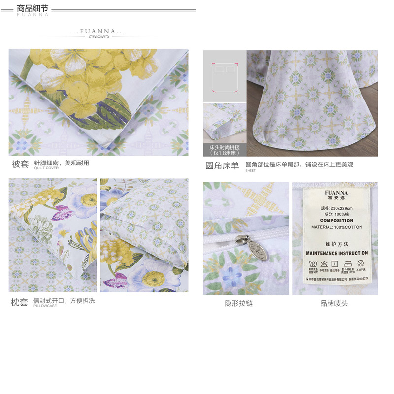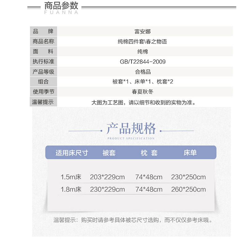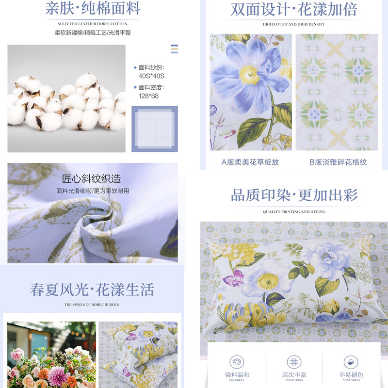 春之物语 床单四件套(被套1件床单1件枕套2件)(适合1.5米床)【40支斜纹纯棉128*68/浅蓝】 |