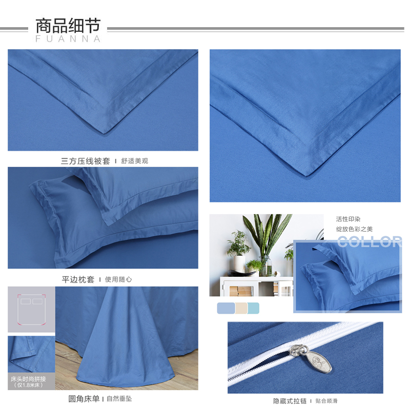 魅蓝雅调 床单四件套(被套1件床单1件枕套2件)(适合1.5米床)【纯棉缎纹/蓝】 |