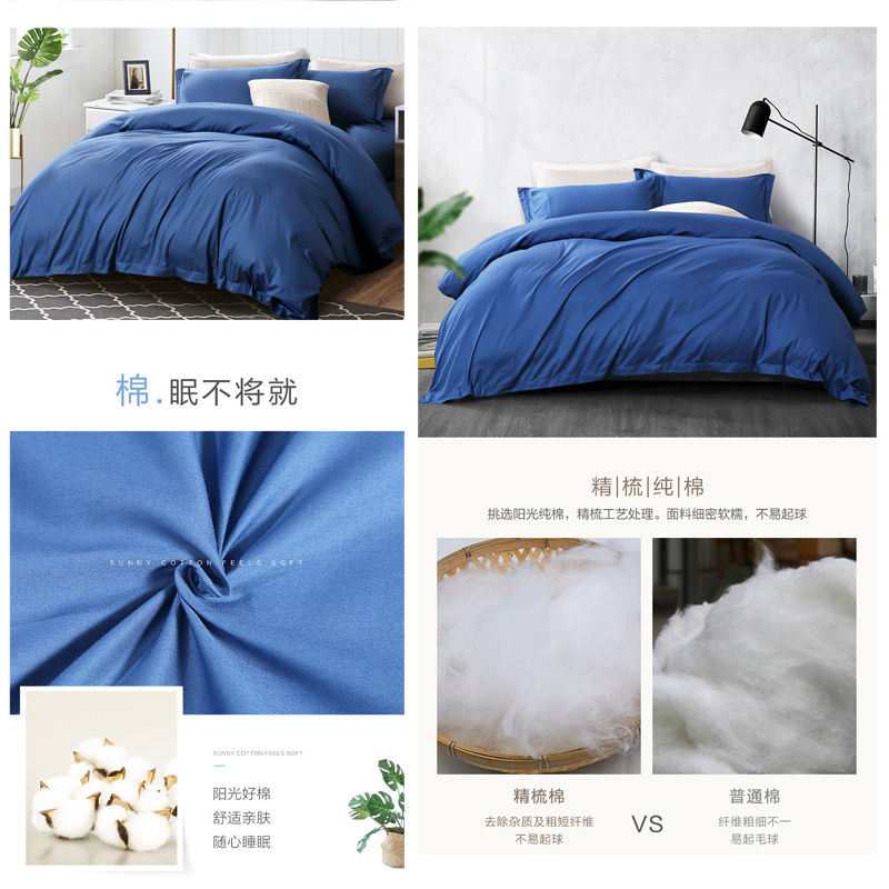 魅蓝雅调 床单三件套(被套1件床单1件枕套1件)(适合1.2米床)【纯棉缎纹/蓝】 |