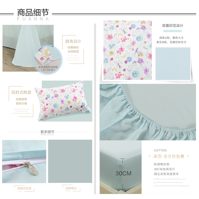 花恋初语 床笠三件套(被套1件床笠1件枕套1件)(适合1.2米床)【聚酯纤维/标准色】 |