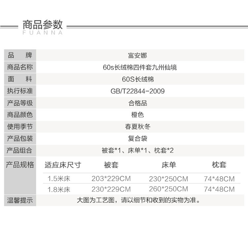九州仙境床单四件套(被套1件床单1件枕套2件)(适合1.8米床)【60支长绒棉/橙】 |