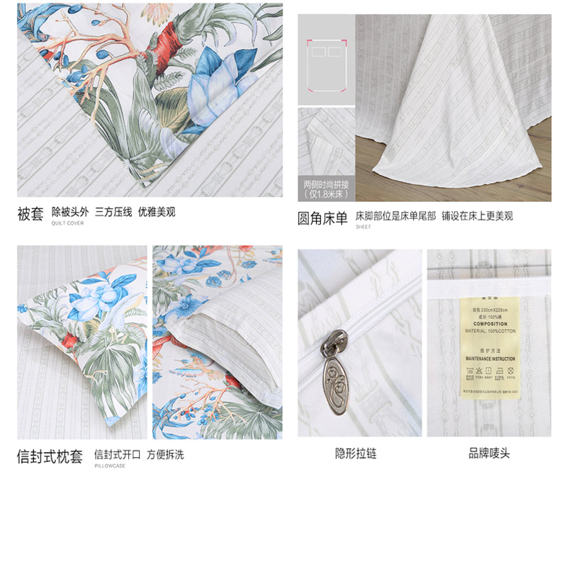 清风饮露 床单四件套(被套1件床单1件枕套2件)(适合1.5米床)【40支纯棉/绿】 |