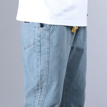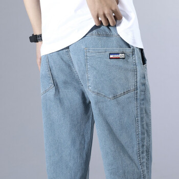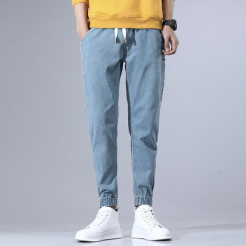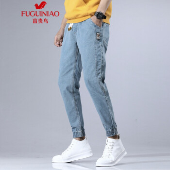富贵鸟男装裤子男新品纯色棉工装裤休闲裤韩版修身大码牛仔裤男士束脚九分裤裤男卫裤裤直筒下装 浅蓝色 XL(30/2尺3) |