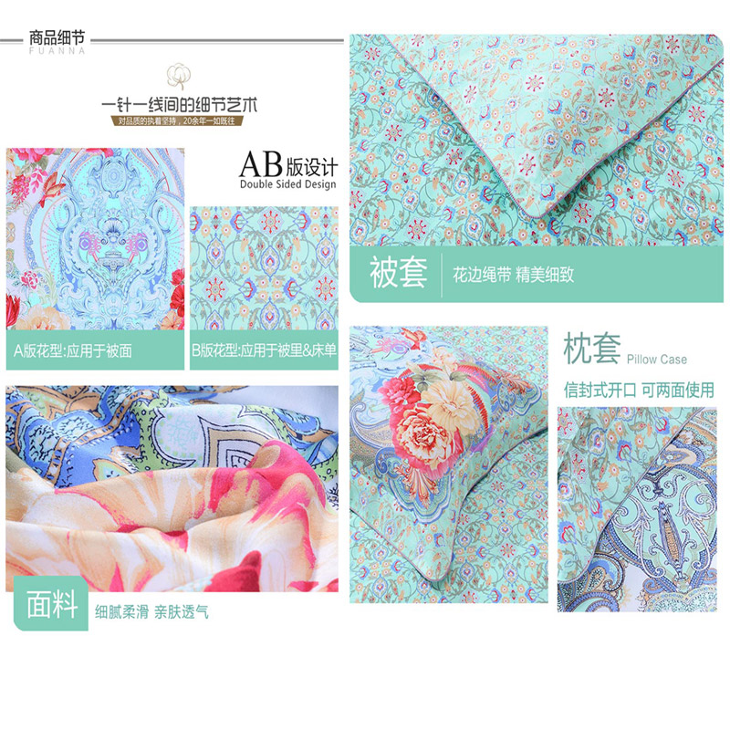 悦玺神殿 床单四件套(被套1件床单1件枕套2件)(适合1.5米床)【60支长绒棉/绿】 |