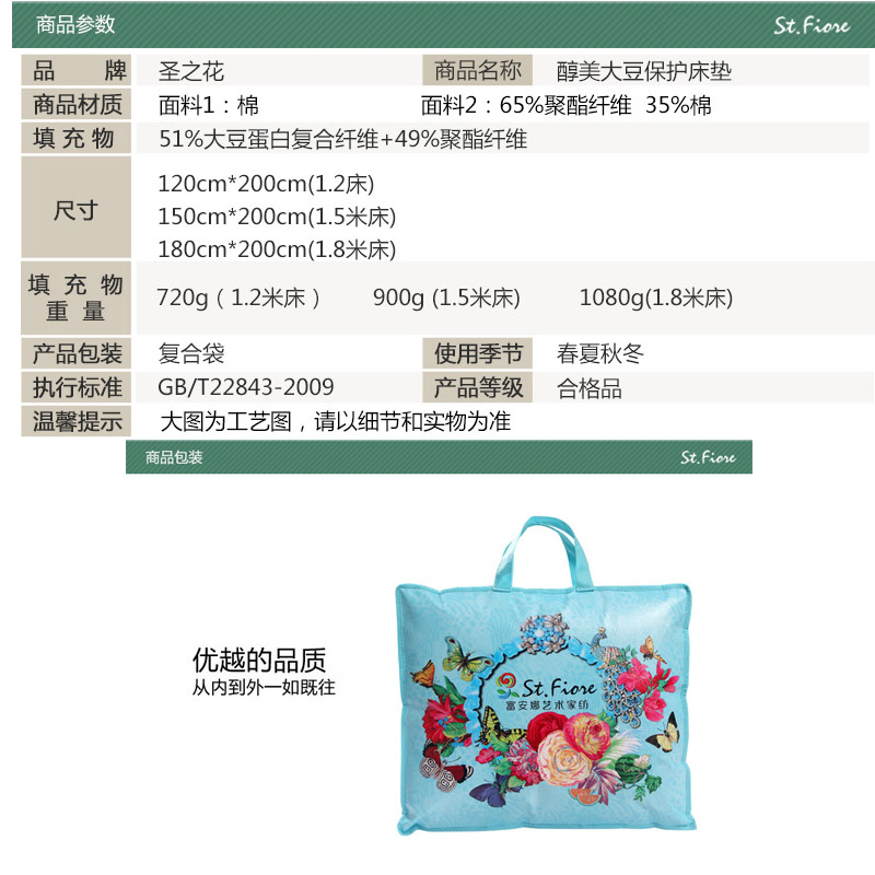 醇美大豆保护床垫 床笠款(床垫1件)(适合1.2米床)【40支斜纹128*68棉/粉】 |