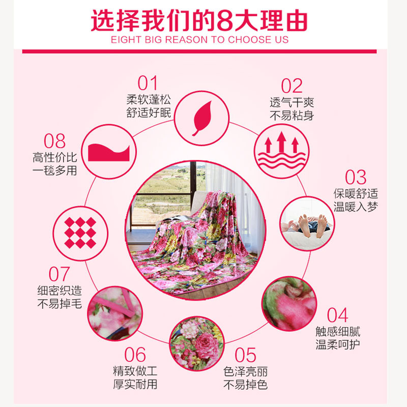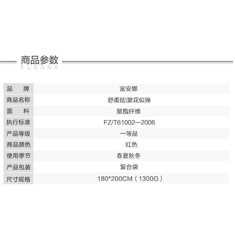 繁花似锦舒柔毯(适用1.5/1.8米床)(舒柔毯1件)【材质:聚酯纤维;克重:1300克/红】 |