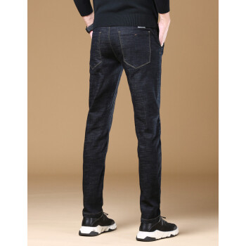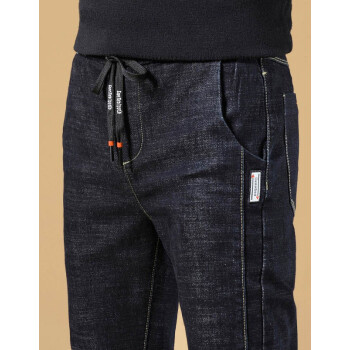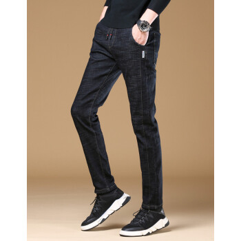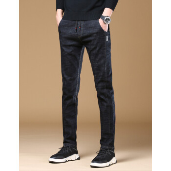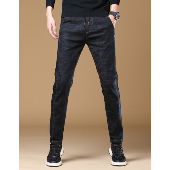 牛仔裤男修身春秋韩版松紧腰男装小脚弹力潮流工装裤时尚百搭休闲裤子 黑色 30 |