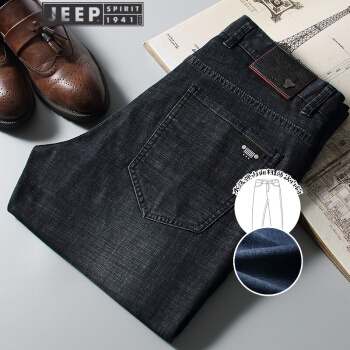 吉普 JEEP 牛仔裤男直筒夏季薄款弹力透气时尚中腰舒适休闲新款宽松男裤 39黑色 42 3尺2 |