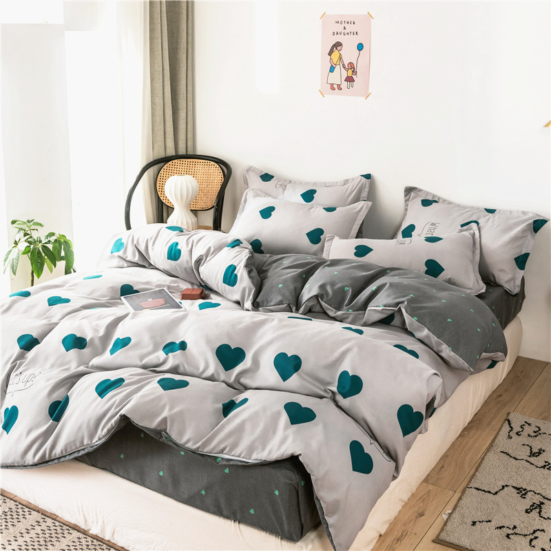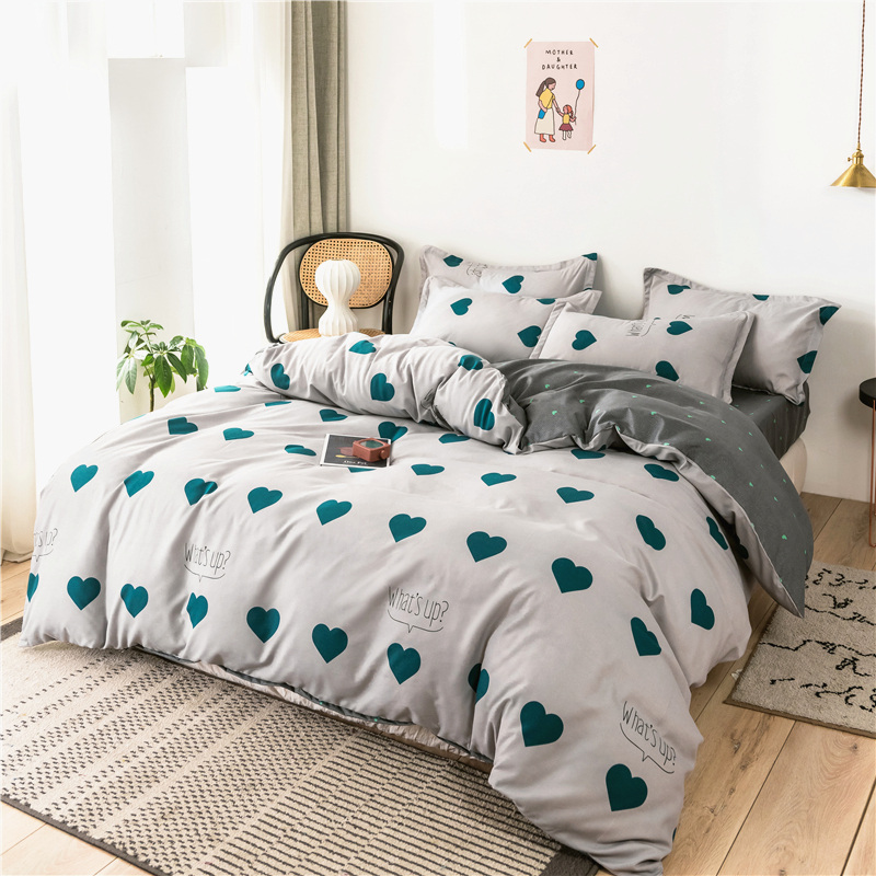 清新时尚ins洛卡棉四件套【洛卡棉(聚酯纤维)/心恋-浅灰】 |