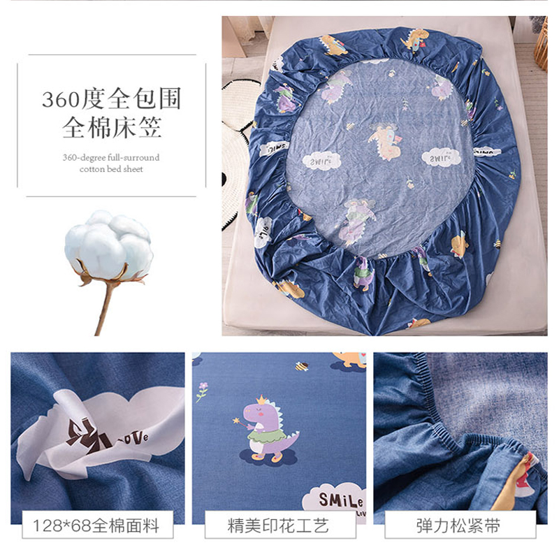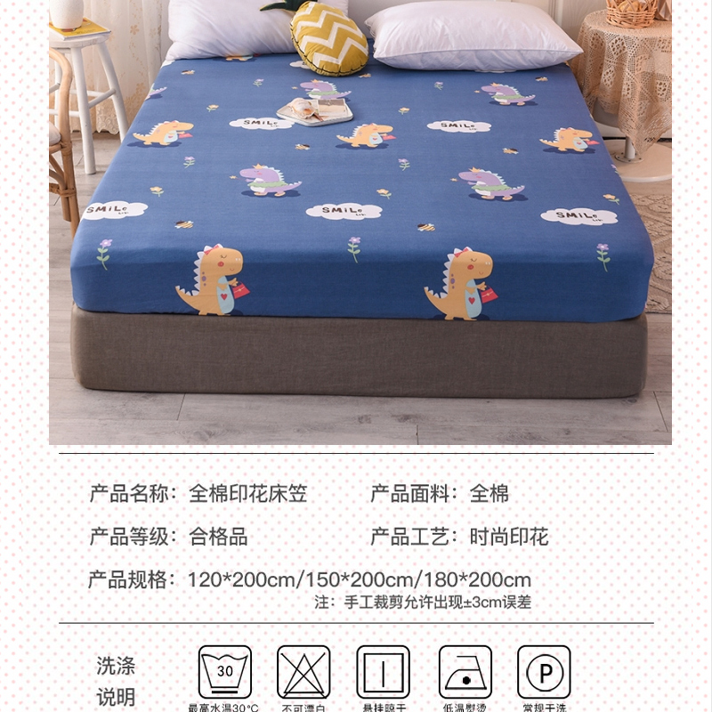 全棉印花小清新床笠【全棉/恐龙宝贝蓝】 |