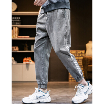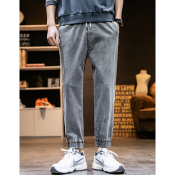 戈凡尔 夏季薄款男士牛仔裤 宽松弹力新品港风潮流运动九分裤休闲哈伦裤修身小脚学生工装裤松紧带束脚裤 807灰色【薄款/宽松/弹力】《86%客户选择》 XL【(31-32码)体重120-140斤】 |
