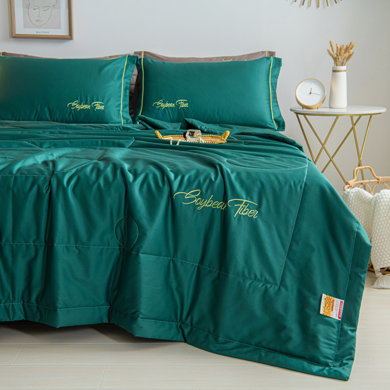 纯色刺绣水洗冰丝大豆纤维夏被【水洗冰丝(聚酯纤维)填充大豆纤维/诱惑绿】 |