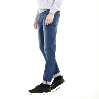 J.ZAO 男士基础合体直筒牛仔裤 休闲牛仔裤男 中蓝色 32(170/82A) |