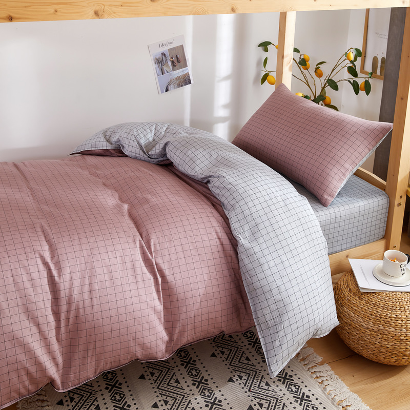 【AB版双面可用】学生宿舍高密全棉印花三件套【13070全棉/罗马假日粉】 |