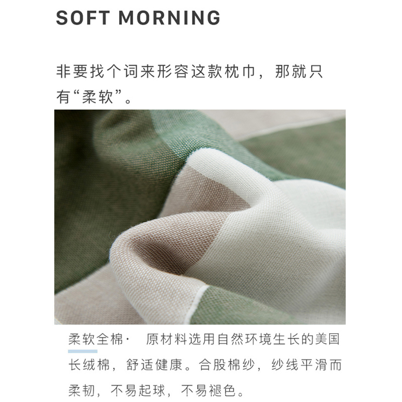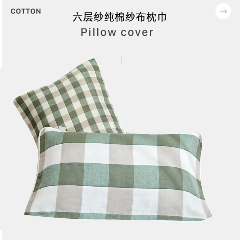 高品质A类全棉六层纱布枕巾一对【A类全棉/枕巾-日式大格绿】 |