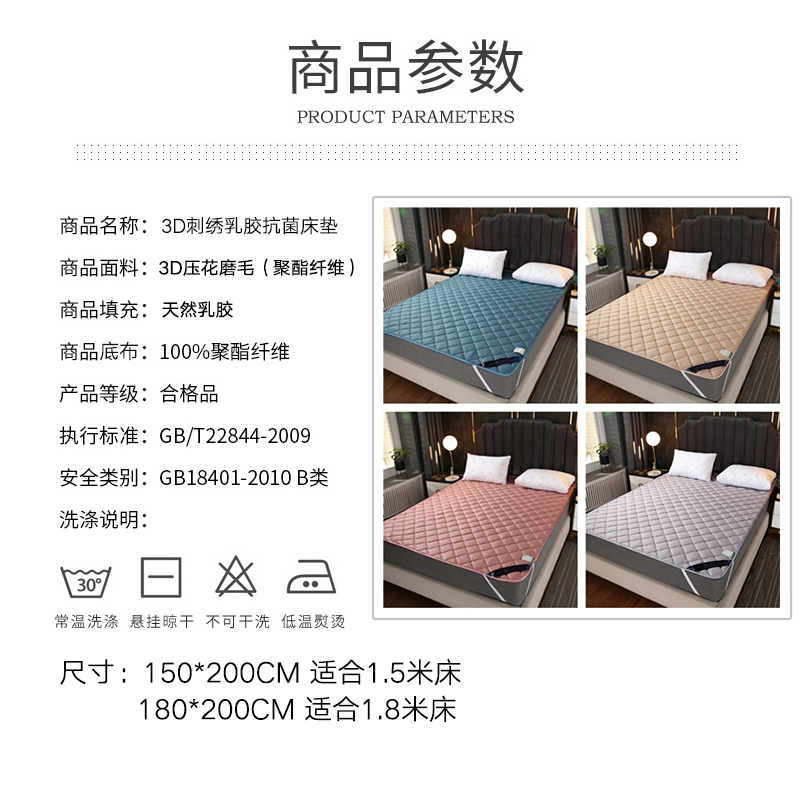 【泰国乳胶】3D刺绣乳胶抗菌床垫【面料:压花面料(聚酯纤维)填充天然乳胶/颜色可选】 |