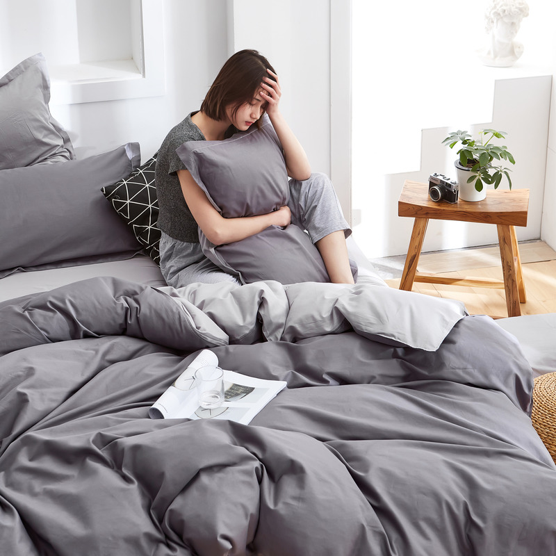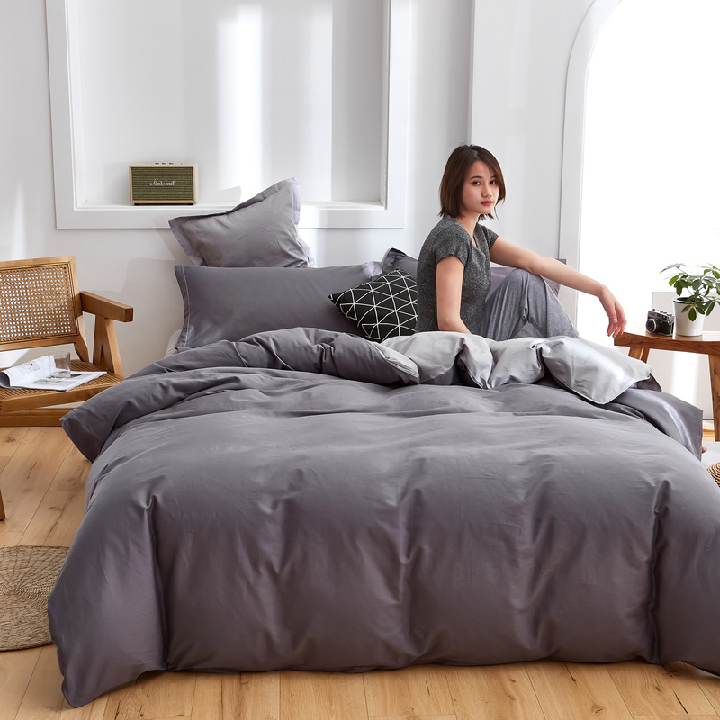 极简时尚双拼全棉喷气四件套【全棉/深灰+浅灰】 |