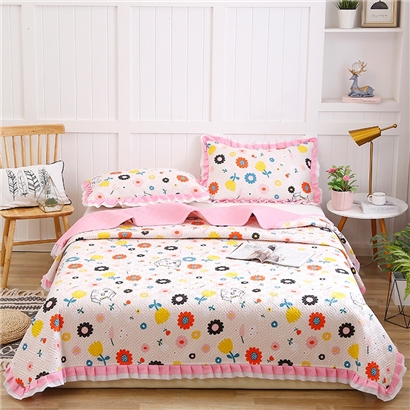 【三层复合】全棉夹棉绗缝床盖三件套【全棉/小花猫】 |