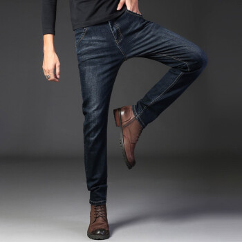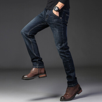 畅影 牛仔裤男夏季新款男士大码修身小脚直筒裤休闲九分裤弹力薄款透气百搭青少年潮流时尚裤子男装 蓝黑色 40 |