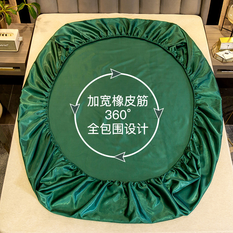【柔软清爽 凉而不冰】无印床笠款冰丝席三件套【冰丝面料(聚酯纤维)/贵族-绿】 |