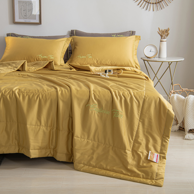 纯色刺绣水洗冰丝大豆纤维夏被【水洗冰丝(聚酯纤维)填充大豆纤维/麦穗黄】 |