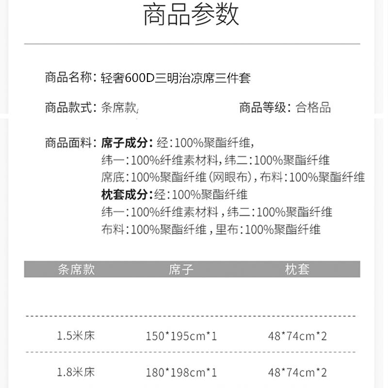 轻奢600D冰丝加厚三明治凉席三件套【聚酯纤维/三明治冰丝粉玉】 |