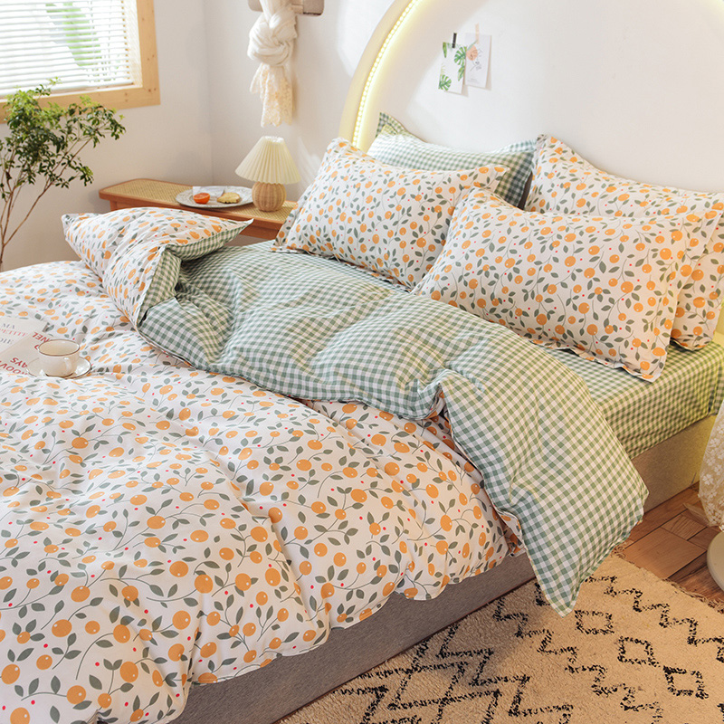 ins清新风AB版简约全棉四件套【全棉/甜蜜橘】 |