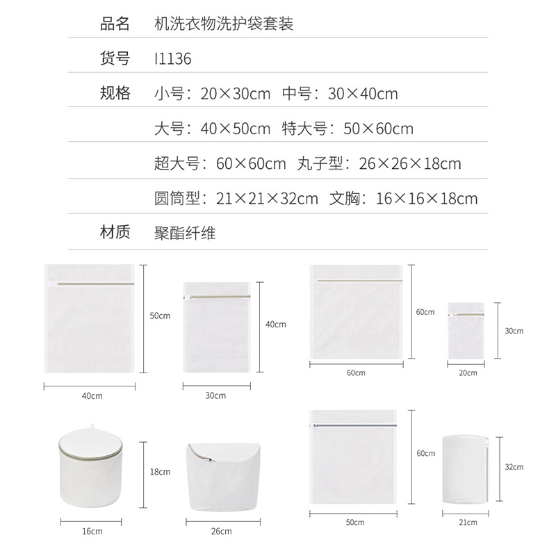 机洗衣物洗护袋八件套【聚酯纤维/白色】 |