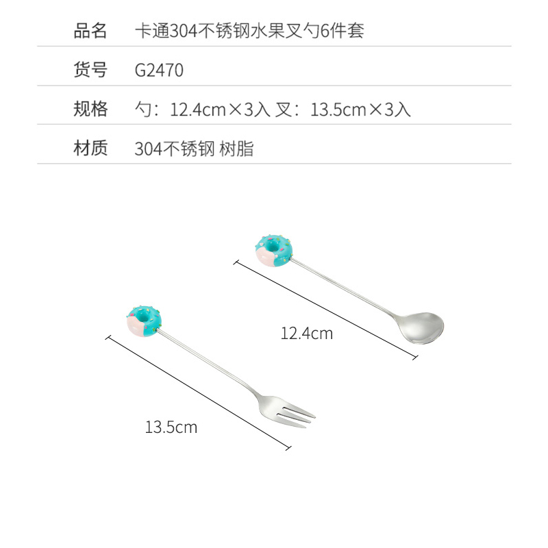 卡通304不锈钢水果叉勺6件套【304不锈钢 树脂/图片色】 |