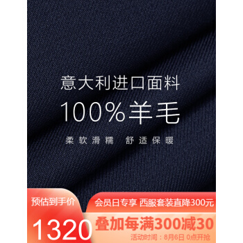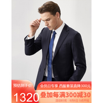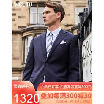 威可多VICUTU男士套西服上装纯羊毛进口面料商务休闲西装外套男VBS88312395 藏蓝色 185/104B |
