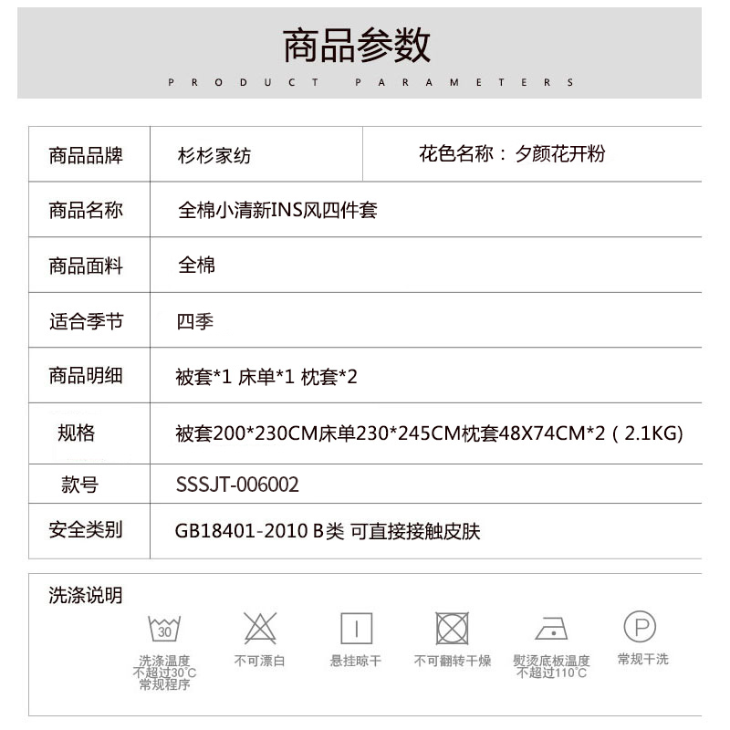 全棉小清新ins风四件套【全棉/夕颜花开粉】 |