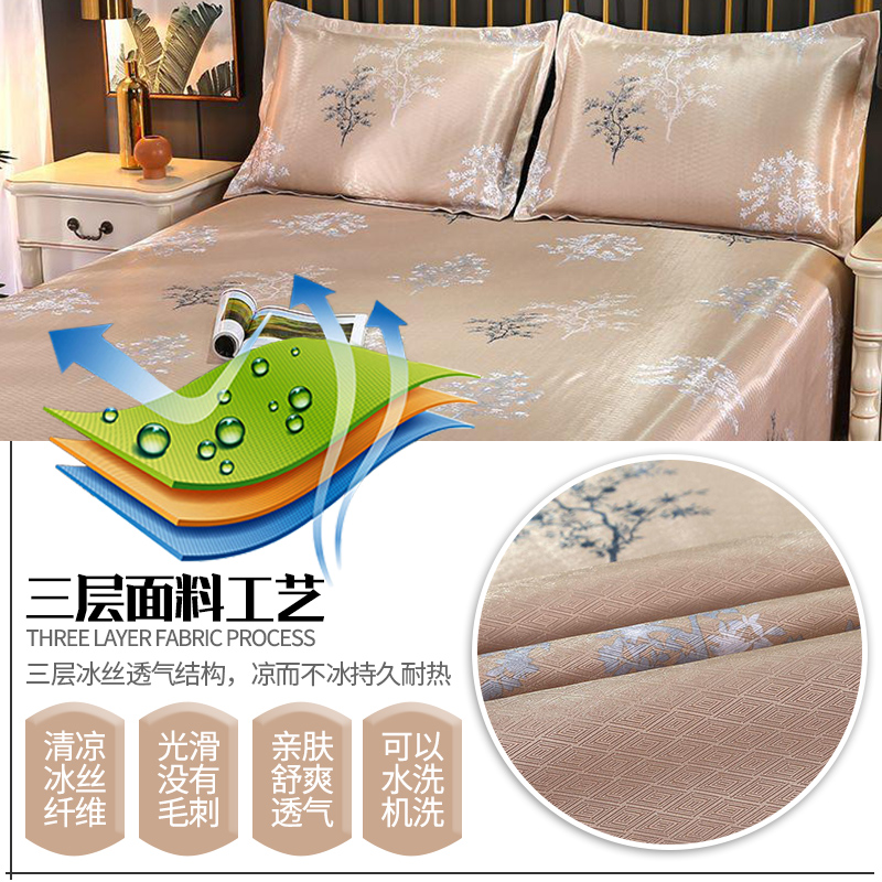 蕾丝花边印花冰丝凉席三件套【聚酯纤维/发财树-金】 |