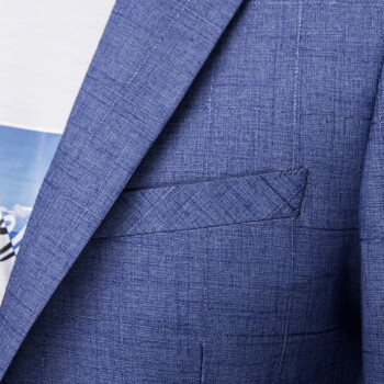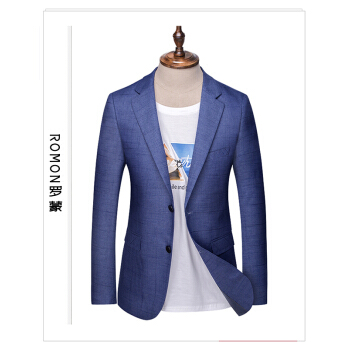 Romon/罗蒙西装男夏季韩版潮流职业休闲西装外套弹力修身正装男无开叉休闲小西装外套男士休闲西装 蓝色细纹 180 |