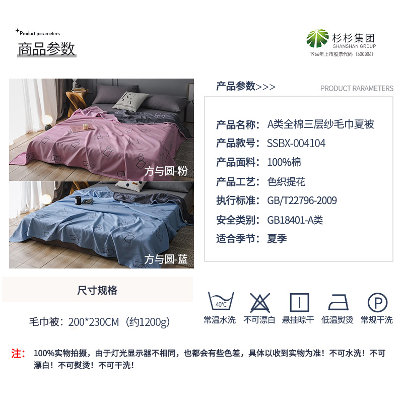 全棉高档三层纱毛巾被【全棉/颜色自选】 |