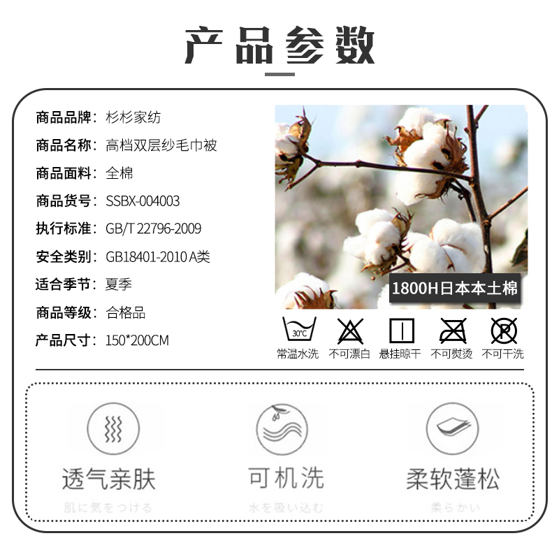 全棉高档双层纱毛巾被【全棉/颜色自选】 |