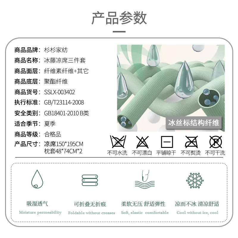 透气冰藤席三件套【面层:纤维素纤维+其他底层:聚酯纤维/颜色自选】 |